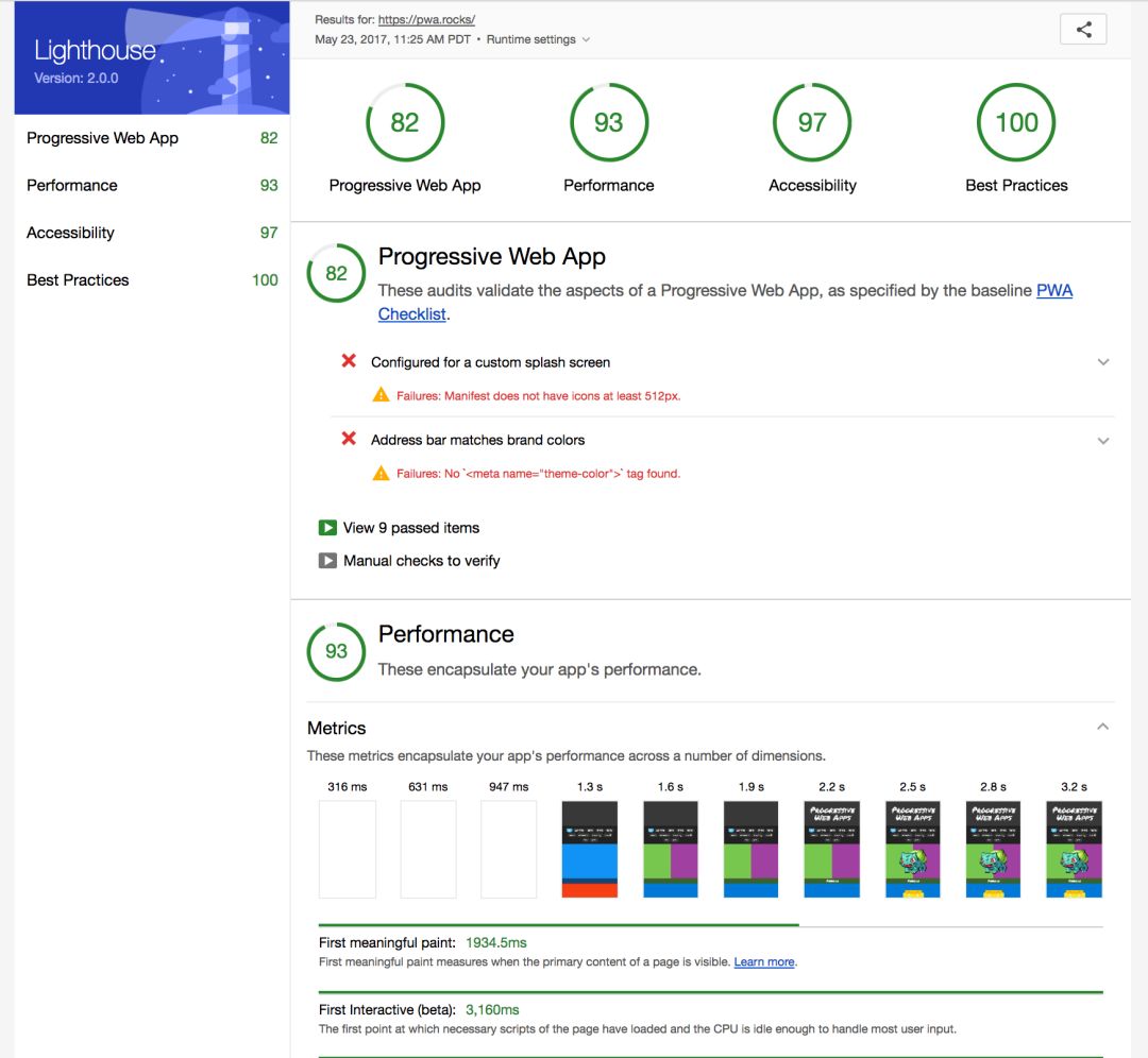 当为 Lighthouse 提供一个要审查的网址,它将针对此页面运行一连串的测试,然后生成一个有关页面性能的报告。可以参考失败的测试,看看可以采取哪些措施来改进应用。